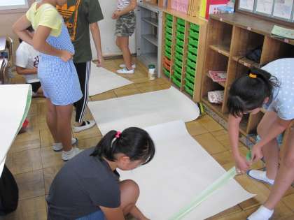 プログラム係では,当日掲示するプログラムの制作にとりかかり,準備係は運動場で準備の方法などについて確認をしました。