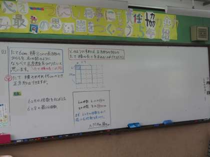 公倍数をつかって,たてと横の長さが違うタイルを並べて,正方形を作るにはどのようにすればよいかを考えました。