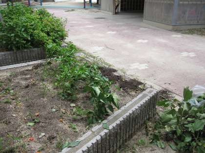 プチトマトとピーマン,なすびを育てていました。先日の台風の影響で,支柱が倒れてしまいましたが,小さな野菜が収穫できました。