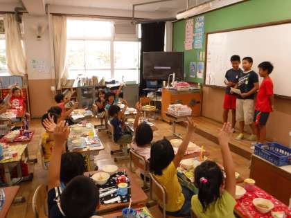 昼休みには給食委員会のお兄さんがクイズを出しに来てくれました。とっても面白いお兄さんたちに大盛り上がりの教室でした。