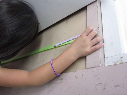 紙テープを使って,長さを比べたり,だいたいの長さを測ったりする活動をしました。