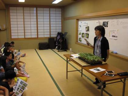 総合的な学習の時間で,農家の人々の思いを知るために,ブロッコリー植えに挑戦します。徳島から農協の方に来ていただき,とても大きくなるブロッコリーについて説明していただきました。