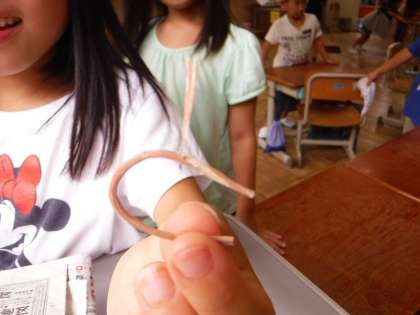 何やら聞きなれぬものを見つけたと言われて見てみると,木の枝が曲がったものを持っていました。どうやらささくれの具合が「と」の字に見えるということのようです。さすが1年生,なかなか柔軟な発想をしています。