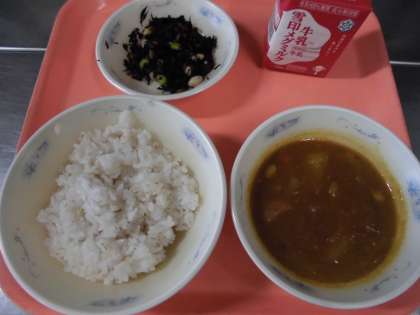 麦ごはん・牛乳・チキンカレー・ひじきのソテー
