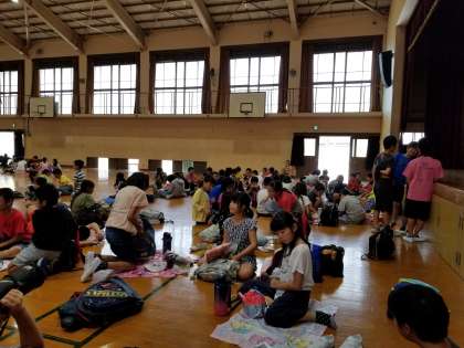 天候がすぐれないので、生き方探求館の体育館でお弁当タイムです。朝早くからお弁当のご準備ありがとうございます。