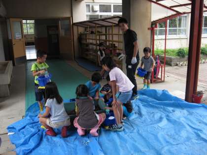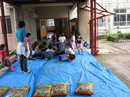 今週の金曜日の贈呈式でいただく人権の花を植えるための準備をしました。一人一人植えていくので,新しい土をしっかりと入れました。