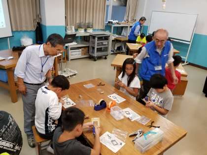 午後からはモノづくり殿堂工房で学習をしました。殿堂学習では京都を代表するモノづくりの企業パネルを見てモノづくりに携わる人々の思いを考えました。工房学習ではITOフィルムという電気を通す不思議なシートを用いてLED電球を光らせました。