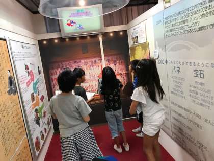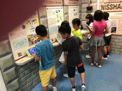 午後のモノづくりの殿堂の学習が始まりました。2組は、ブースの展示学習からのスタートです。身近な会社の展示がたくさんあり、興味深く調べています。