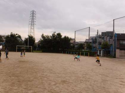 わあ〜,と蜘蛛の子を散らすように子どもたちが駆け出して行きます。1年生はとても元気いっぱい,すぐにチームになってみんなで遊びだします。