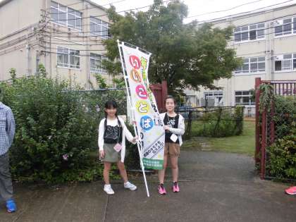 今朝は、いいことばの日とあいさつ運動の日でした。いつもの地域の見守り隊の皆さんに加え、本校児童会の子どもたち、梅津中学校生徒会の皆さんも、朝早くから来てくれました。