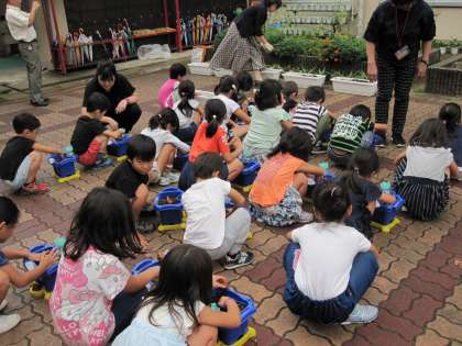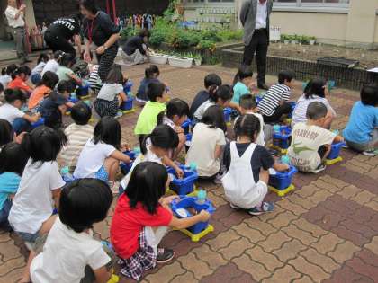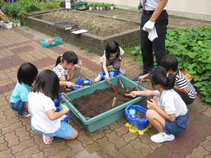 昨日に準備した自分の鉢に一人一人,ていねいに植えました。優しく土をかぶせて,大切にしようとしている姿が伝わってきました。