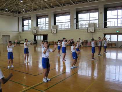 運動会に向けて,昼休みに応援団の子どもたちが,応援練習を頑張っています。各組の子どもたちの先頭に立って頑張ろうとする気持ちがいっぱい伝わってきました。