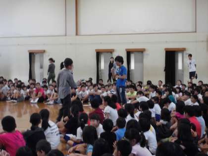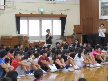 「いじめのない学校にするために」をテーマに発表した代表2名の話をもとに,集会の中では,他の学年からも「一人一人が他の人の気持ちを考えて行動することが大切」などたくさんの意見が出ました。