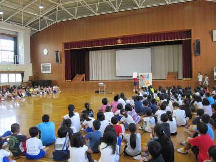 なかよし集会の中で,7月に行われた「たてわりクイズラリー」の結果発表がされました。2学期になり,初めてのよし集会でしたが,初めから最後まで全学年しっかりと耳を傾けていて,素晴らしい集会でした。
