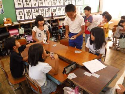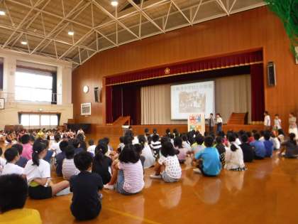 体育の着替えを済ませ,それぞれのたてわり番号を確認してから体育館に向かいました。そろそろ6年生のお兄さんお姉さんが迎えに来てくれなくても,自分でたてわり番号の列に並べるようになる頃です。しっかりと確認して体育館に入りました