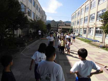 高学年の子どもたちが中心となって企画したたてわり遊びを行いました。休み時間に6年生の子どもたちが,グループの子どもたちのためにビブスを運んだり,ボールを準備したりして率先して活動していました。