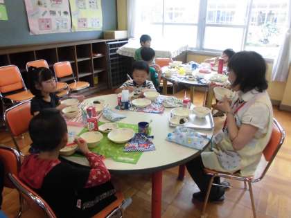 給食調理員さんの吉村さん、栄養教諭の泉原先生も一緒に給食を食べました。