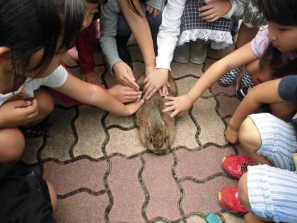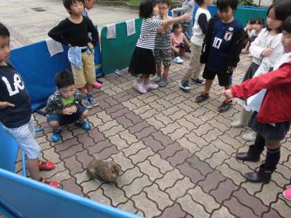いつもと違うところで、梅ちゃんもはじめはびっくりした様子でしたが、1年生のお友だちにやさしく触ってもらったり、そっと見守ってもらったりしているうちに、色々な動きを見せてくれました。