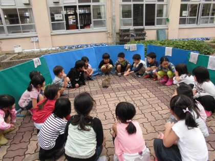 生活科の学習で、うさぎの梅ちゃんとふれあいました。