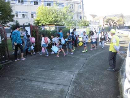 北門でも、地域の皆さんと児童会の子どもたちが迎えます。