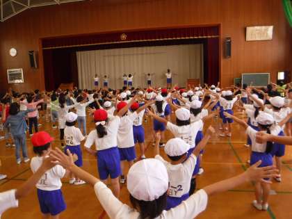 中間休みには運動会の準備体操がありました。B´z「ウルトラソウル」に乗せて,子どもたちが飛んだり跳ねたり。掛け声も決まっています。