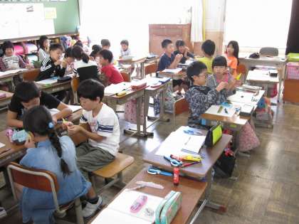 二等辺三角形や正三角形の角の大きさについて調べました。切った二等辺三角形や正三角形を折って重ねたりしながら,角の大きさについて学習しました。