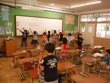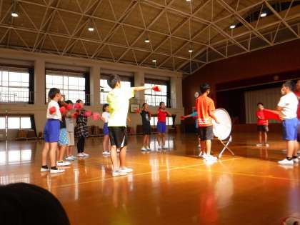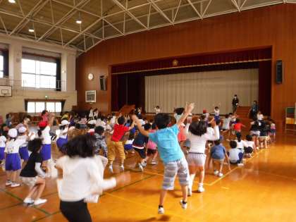 と応援合戦が大声で始まります。準備運動のダンスもお手本なしで踊れるようになりました。中間休みに1,2,3年生で確認,あとはタイミングと左右,という所です。