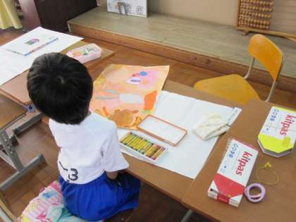 クレパスを使って,色ぬりを頑張りました。今日は,姿勢を「ピン」と,背中をまっすぐにして頑張りました。
