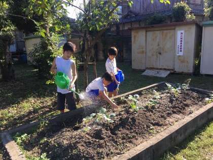 水やりを頑張っています。すくすくと葉が大きくなって成長しています。