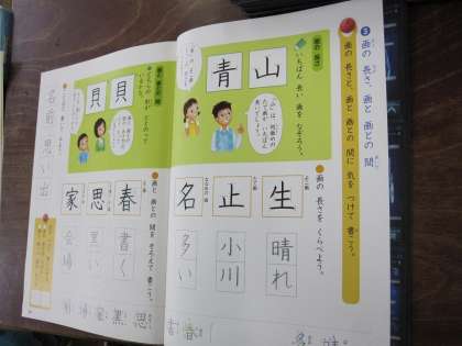 画の長さに気を付けて,漢字を練習しました。「青」など,長さに注意ながら練習しました。