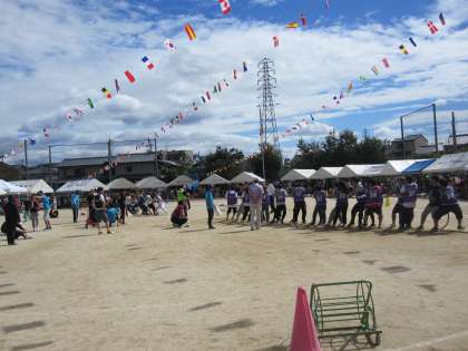午前の部の最後の競技は,綱引きでした。かけ声を出して引っ張る姿に迫力がありました。