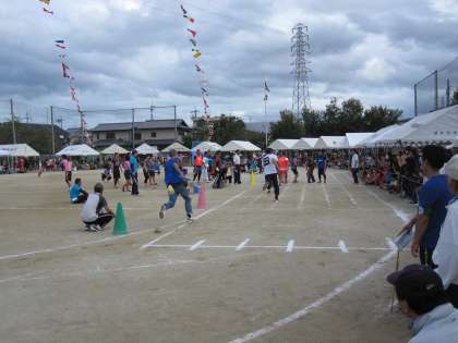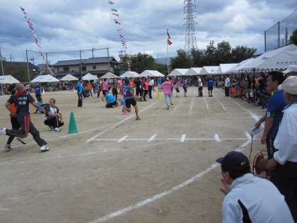 北梅津区民体育祭も終盤となり,一般リレーの決勝が行われました。抜きつ抜かれつの白熱した競争でした。