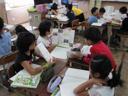 調べてまとめたリーフレットを使って交流をしました。それぞれが気づいたことや調べて分かったことを伝え合いました。