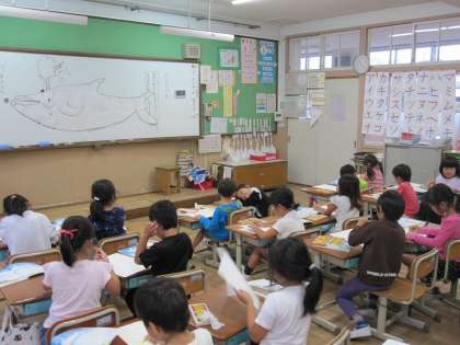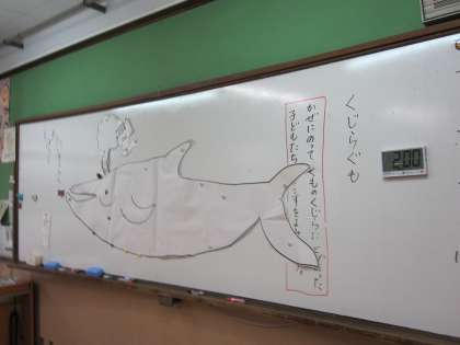 「くじらぐも」を読んで,くじらぐもにのった子どもたちの気持ちを考えて,くじらぐもにのる子どもたちを描きました。