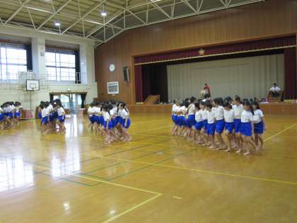 今日の昼からは雨が降ってきたため,体育館で練習をしました。列をそろえながら動く練習をして,よりきれいに完成できるよう頑張っています。