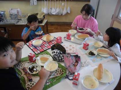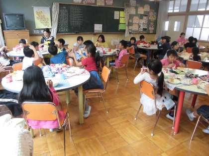 今週のランチルームは、3年1組です。給食調理員の吉村さんも、一緒でした.