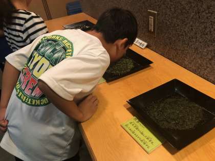 茶葉の実物を見たり,においをかいだりして見学しました。