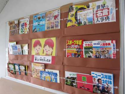 図書支援員さんによる新しい本を紹介するコーナー掲示をしていただいています。