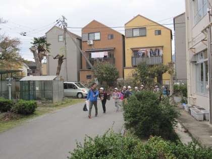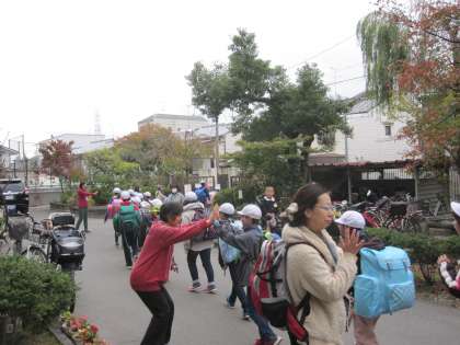 出発式の後,お見送りに来ていただいた保護者にあいさつをしながら,元気よく学校を出発していきました。
