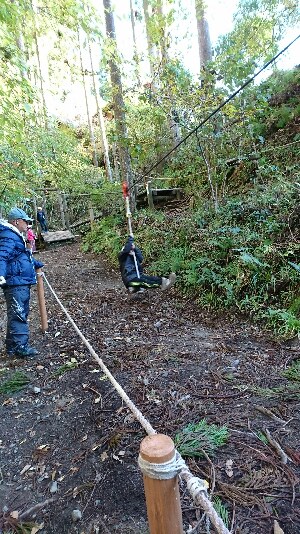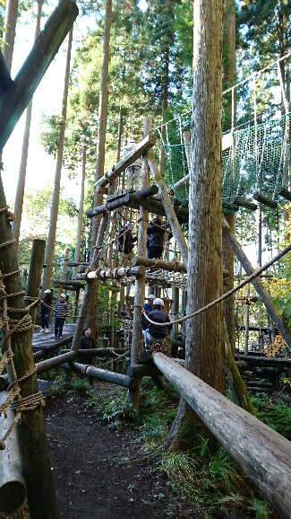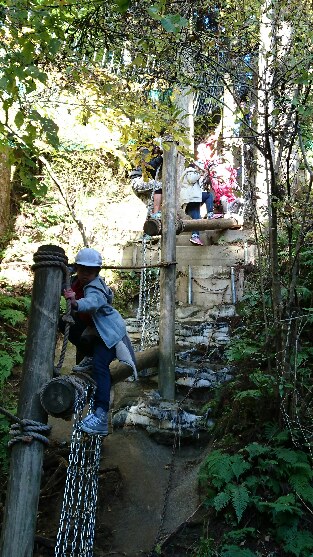 悲鳴あり、笑いあり、アスレチックに、チャレンジしています。