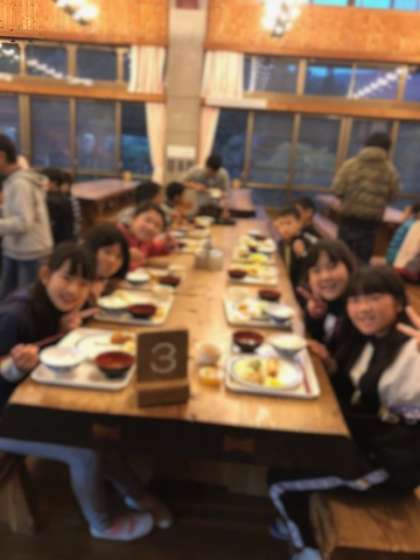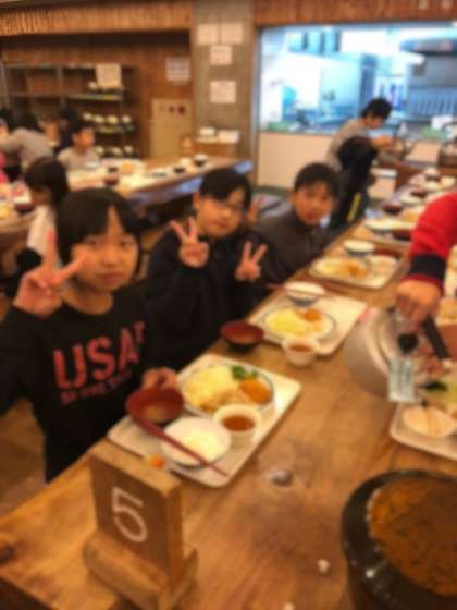 夕食時間になりました。おかずを選んでたくさん食べています。
