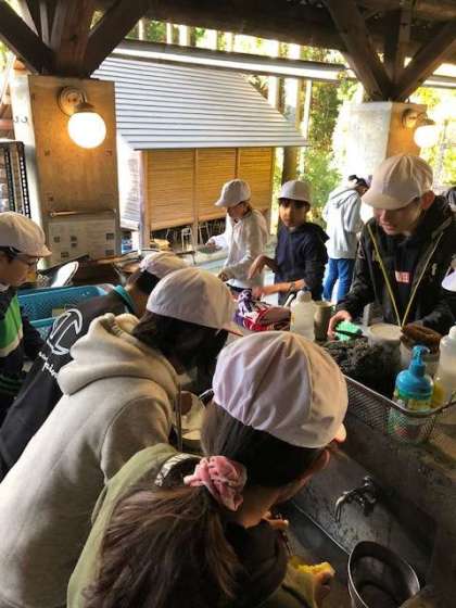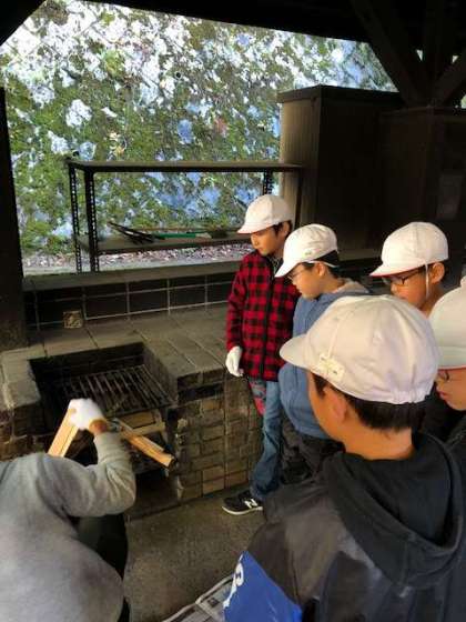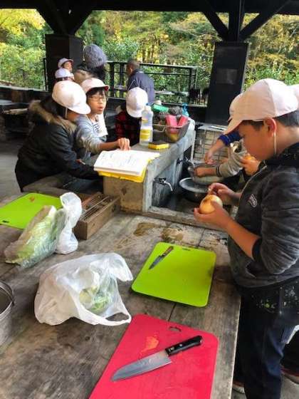 野外炊事が始まりました。それぞれの役割を頑張っています。