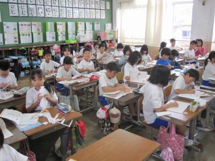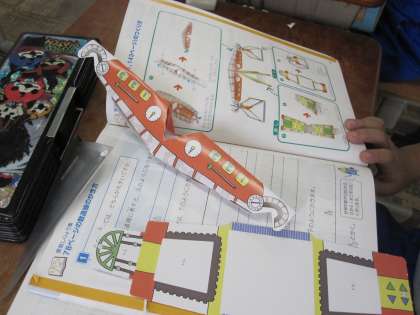 重さの学習を進めていくために,教科書についているてんびんの作成をしました。なかなか細かくて苦戦していました。