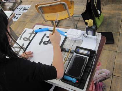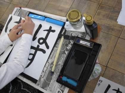 ひらがなで難しい字ですが,1画1画丁寧に,集中し,筆を立てて「はす」の字を書くことができていました。