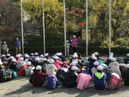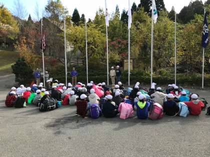 四日間過ごした山の家ともとうとうお別れです。退所式ではお礼の言葉と終わりの言葉をしっかりと伝えることができました。山の家の職員の方に見送られこれからバスに乗り込みます。