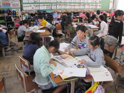 グループで,「すがたをかえる〇〇」で調べ,図鑑を作っています。グループでは,どのような内容を入れるのか話し合いました。