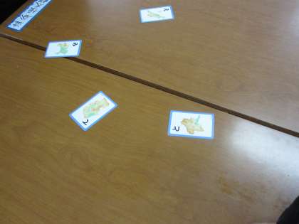 かるたを使って,言葉を学習しました。読まれた言葉のひらがなを素早くとることができました。