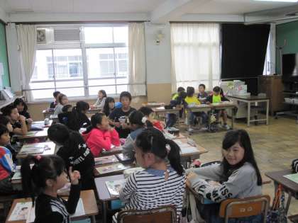 道徳科と外国語活動で,交換授業を行っています。道徳科では,教材を通していじめが起きないためにどんなことが大切なのか,自分たちの考えを出し合いました。