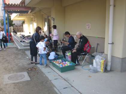 体育館の外では,地域の方々によるヨーヨー釣りやあてものが行われています。