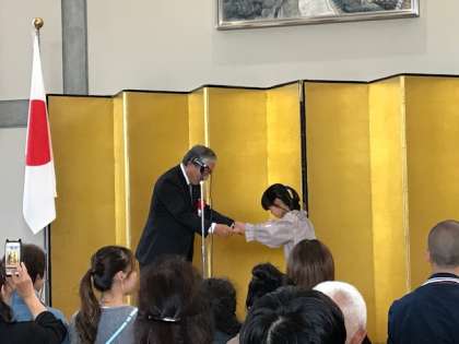 右京ふれあい文化会館で敬老のポスター展と表彰式がありました。本校の児童は右京少年補導委員会長賞をいただきました。